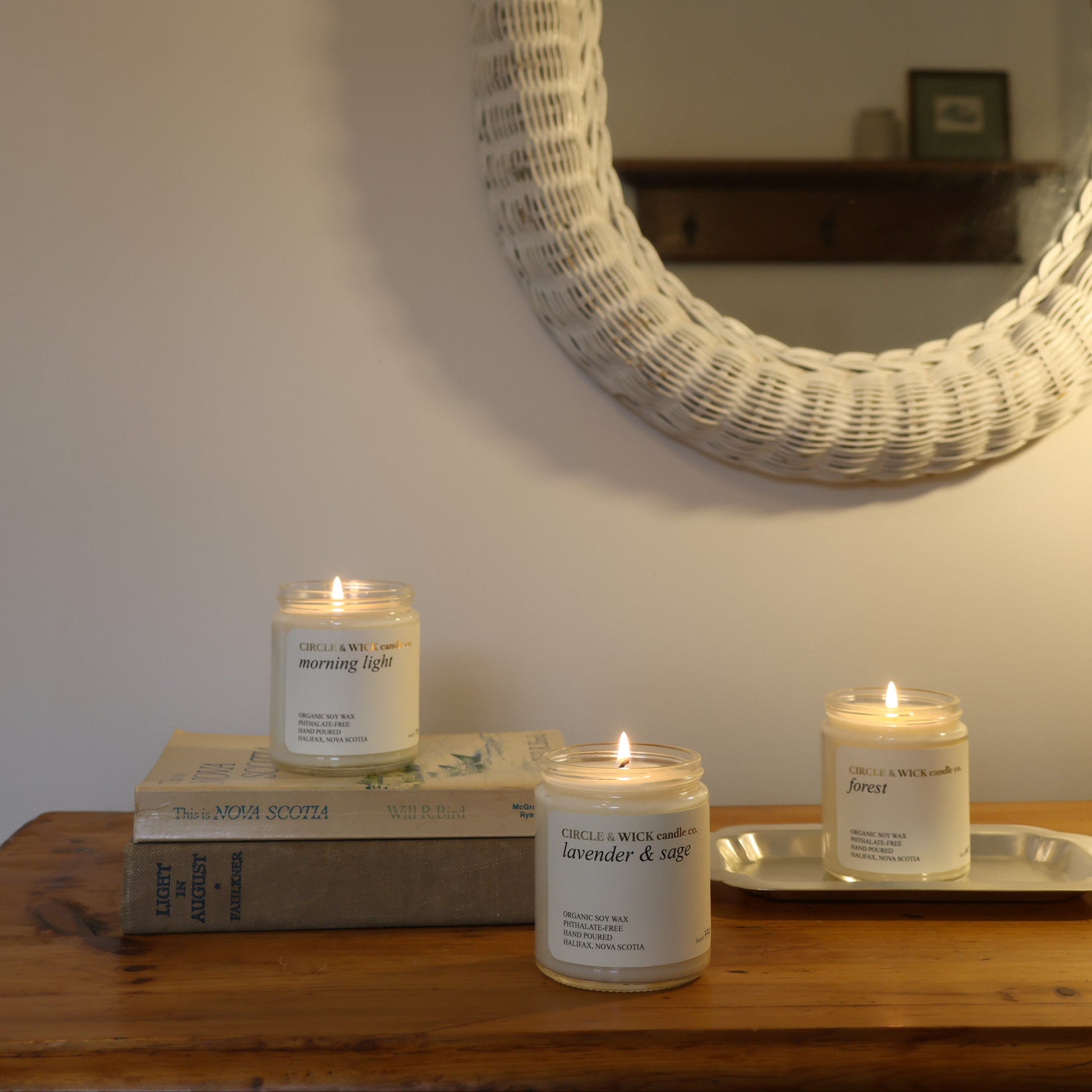 Our candles are made with 100% organic soybean wax, fragrance oils, and cotton wicks. We chose fragrances that are phthalate-free and never tested on animals.