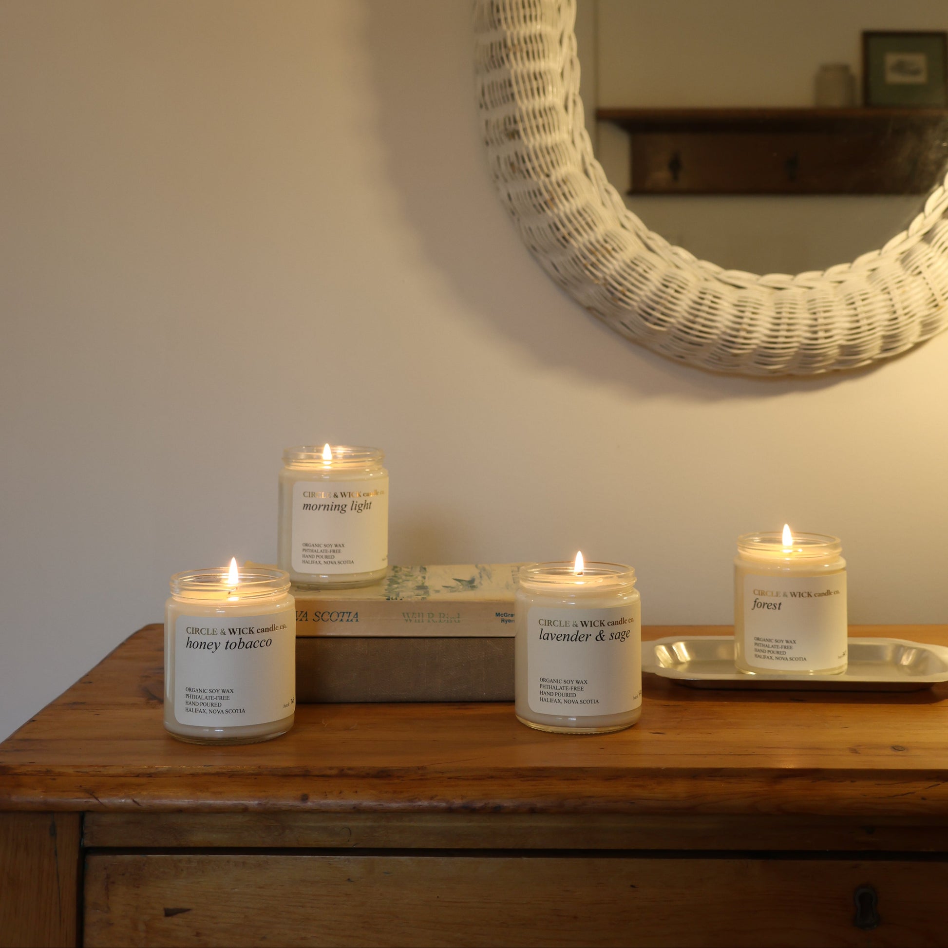Our candles are made with 100% organic soybean wax, fragrance oils, and cotton wicks. We chose fragrances that are phthalate-free and never tested on animals.