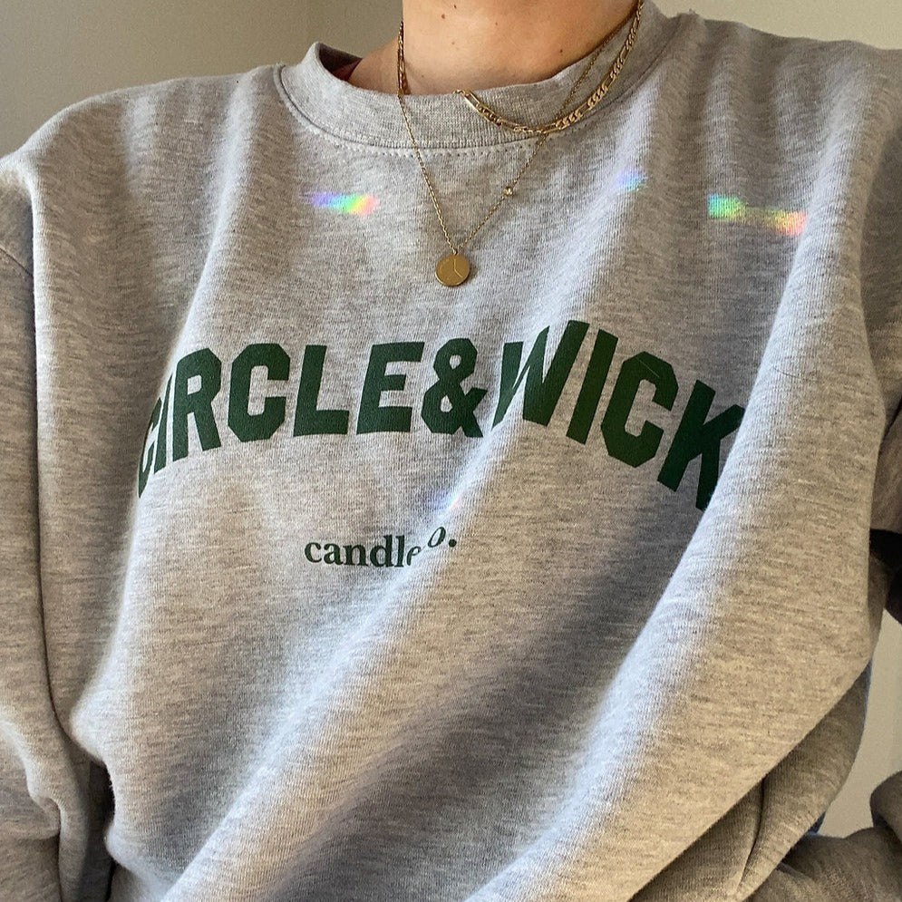Our first piece of Circle & Wick merch! Represent your favourite candle company in this soft, heavyweight crewneck. Available in grey with white font or grey with green font.